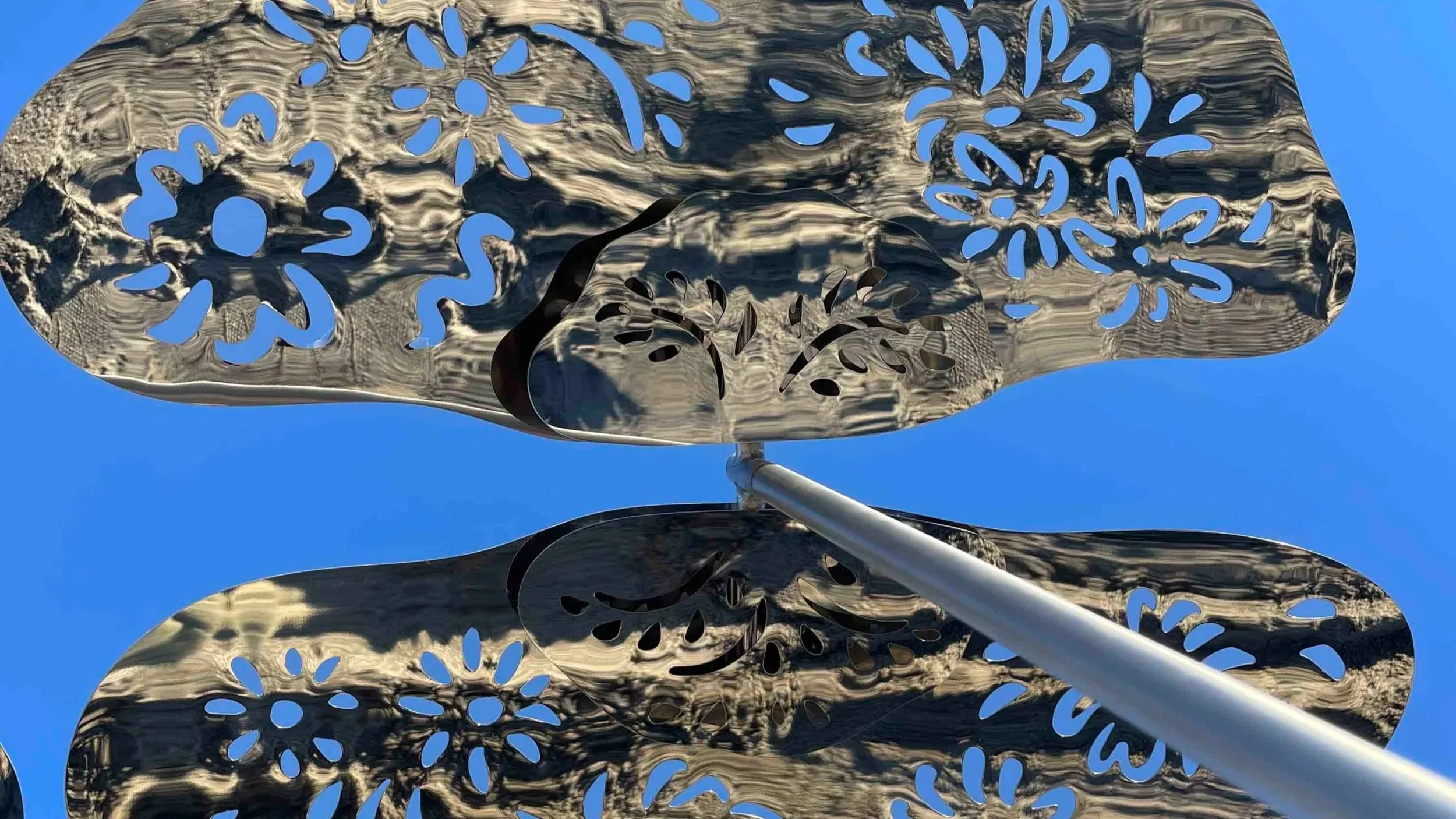 Among the Wildflowers is a short-listed proposal for a suspended, kinetic artwork designed to welcome visitors into a shared architectural space. Fabricated from mirrored stainless steel, each form incorporates laser-cut patterns derived from my botanical paintings, integrating hand-drawn imagery into the organic, moving structures. As the forms shift, they reflect and interact with their surroundings, creating a dynamic visual experience.