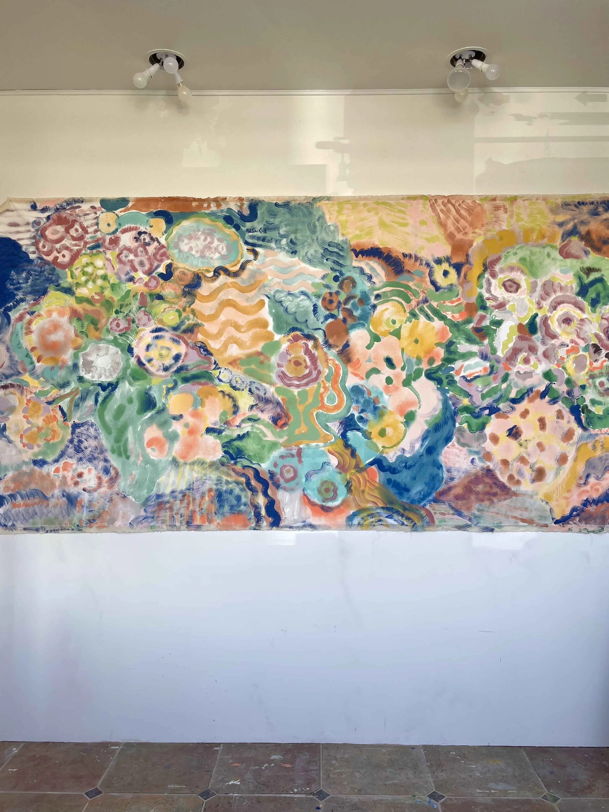 My painting practice is inspired by the natural flora and fauna of the landscapes I have lived in and that I dream of being in— they are celebrations of tangled gardens, meditative brushstrokes and intuitive mark making.