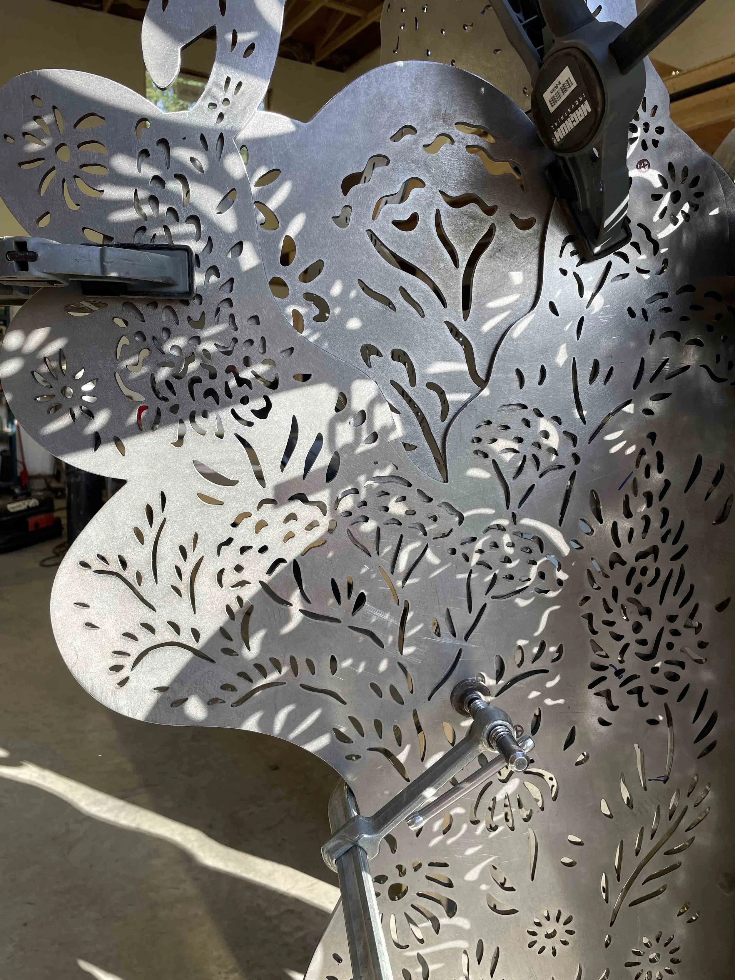 Ramble & Bloom explores themes of play, community, and place through a vibrant CNC-cut steel sculpture situated at the heart of the Lonsdale Dog Park Plaza. The steel flora and canine forms are perforated with botanical paintings inspired by native plant species of the North Shore landscape.
