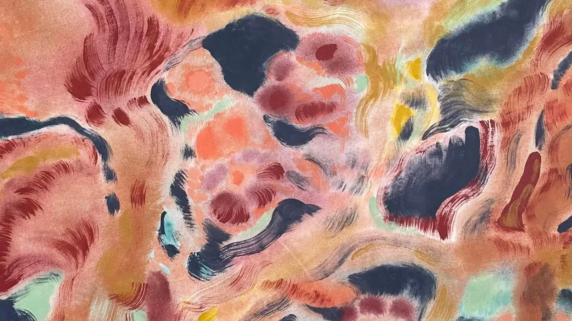 This painting came about through thoughts of curving garden light and spontaneous mark making; showing itself to me along the way through watery washes, scratchy brushstrokes and layers of ochre, mauve and dusty periwinkle.